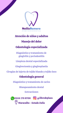 ¿Tienes alguna pregunta para Dra Neilix Romero - Periodoncia?Explica tus objetivos y requisitos o solicita la información adicional que precises para tomar una decisión.
